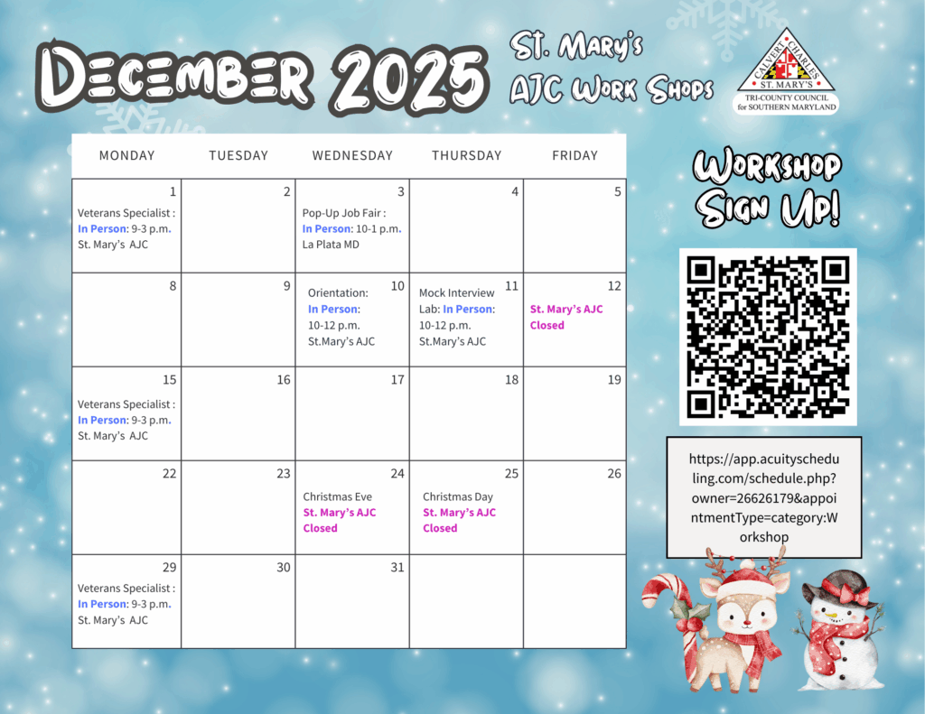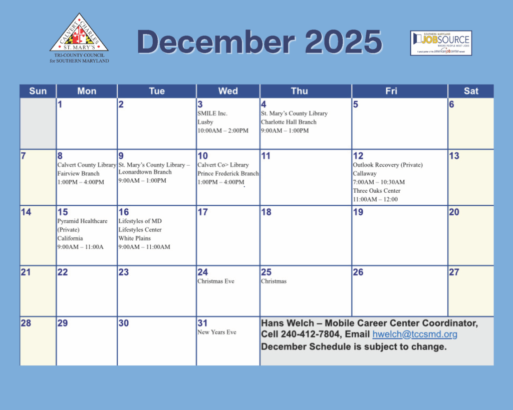 Want to visit one of our American Job Centers but can’t get to those offices? Find the Mobile Career Center around Southern Maryland!