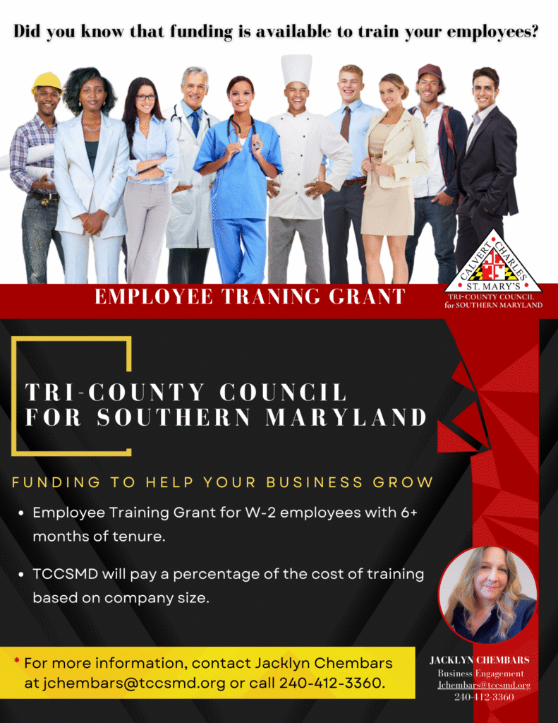 Did you know that funding is available to train your employees? Contact Jacklyn Chembars @ JChembars@tccsmd.org or 240-412-3360